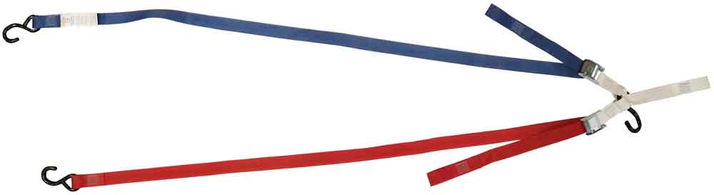 Tie-downs, 3 Point Tie-down, S Hooks On One End, S Hook With Soft Loop On Opposite End 3 Point Utility Cam Buckle Tie-down Configuration, Also Called A Y-strap For Its Shape, Allows The Operator To Anchor The Tie-down In Three Locations For Added Securement Cam Buckle Sewn On Two Straps For Tightening Cam Buckles Are Hand Tightened, No Mechanical Tightening System The Adjustable Strap Sewn Through Each Cam Buckle Has Sewn-in Pull Loope To Make Tightening Easier And To Prevent The Strap From Being Removed From The Buckle An S Hook Is Sewn On The End Of Both Adjustable Straps The Fixed End Side Of Each Cam Buckle Is Sewn To A Common S Hook Forming The Three Points One Cam Buckle Fixed End Has A Soft Loop Extension With Flat Sewn Loop To Connect Back To The Shared Fixed End S Hook Commercial Duty Cam Buckle For Great Strength And Durabiity Cam Buckle Is Made Of Steel And Has Zinc-silver Plating On The Frame And Zinc-silver Plating On The Trigger For Superior Weather Protection Heavy Duty S Hook For The Highest Strength And Durability S Hooks Are Made Of Steel And Have A Black Vinyl Coating To Help Prevent The Hook From Scratching Its Surroundings S Hooks Are The Standard S Hook Configuration, One Closed End, One Open Hook End. The Open Hook End Has A Diameter Larger Than 1 Inch To Fit Over A 1 Inch Diameter Bar Such As A Handlebar Strap Is Made With 4500 Lb Polyester Tie-down Webbing Sewn With Silver Polyester Thread Strap Lengths Are Measured As The Webbing Only, Cam Buckle And Hooks Are Not Included In The Measurements Sewn In The Standard Method To Meet The Provided Strength Rating 4 Inch Fixed End Strap Length Between Cam Buckles And Common S Hook, 10 Inch Soft Loop Length Extending After The Common S Hook Custom Printed Strap Tag With Customer Information Sewn Next To The S Hook On The Blue Adjustable Strap