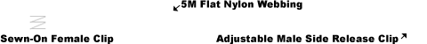 - sewn on CSRPF15K-2C Side Release Female End on one end, adjustable CSRPAM15K-2C Side Release Buckle Male Clip on opposite end