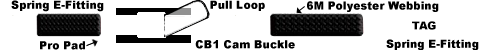 - CHE2-4M Spring E Fitting on both ends, adjustable strap has a sewn-in pull loop