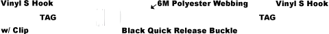 - CHSRC1V-1M Vinyl Coated S Hook with Retainer Clip on fixed end strap, CHS1V-1M Vinyl Coated S hook on end of adjustable strap