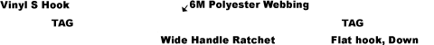 - CHS1V-3M Vinyl Coated S hook on fixed end, CHFN2-4M Narrow Flat Hook, hook facing down, on the Adjustable Strap