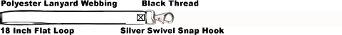 - Lanyard Configuration, Flat Loop On One End, Snap Hook On The Opposite End, Strap Only, Sewn To A Specific Length, Has No Tightening Mechanism