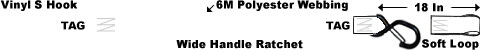 - Tie-downs, Ratchet Strap, S Hook With Retainer Clip On One End, Combination Of S Hook With Retainer Clip And Flat Sewn Loop On The Opposite End