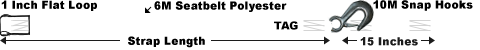 - 1 Inch Flat sewn loop on one end, CHTH-10M Forged Snap Hook, 15 inch safety strap with CHTH-10M Forged Snap Hook