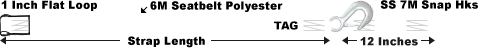 - 1 Inch flat sew loop on one end, CHTH516S-7M-316 Stainless Steel Forged Snap Hook with 12 inch snap hook safety strap on the opposite end