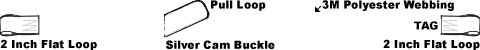 - 2 Inch flat sewn loop on fixed end, Adjustable strap has a 2 Inch flat sewn loop and a sewn-in pull loop