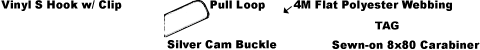 - CHSRC1V-1M Vinyl Coated S Hook with Retainer Clip on fixed end, Adjustable strap has a CHCCG8-1M zinc-silver carabiner clip on the end and a sewn-in pull loop
