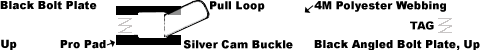- 1 Inch Black CFBP1K-1M Angled Bolt Plate, Bend Angle Up, On Both Ends, pull loop sewn into adjustable strap