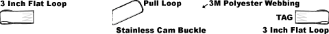 - 3 inch flat Sewn Loop on fixed end, Adjustable strap has a 3 inch flat sewn loop on the end and a pull loop near the buckle