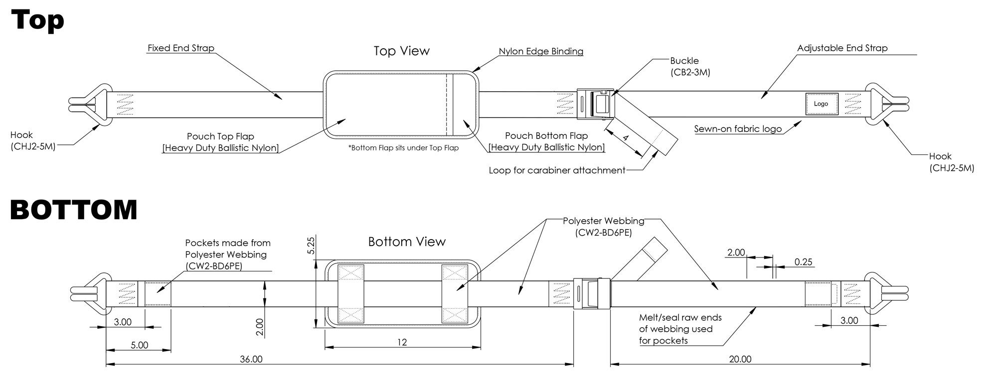 2 Inch Cam Buckle Tie Down Custom Printed Strap Tag CB2-3M 2 Inch Cam Buckle, Zinc-yellow Fixed end has a CHJ2-5M Double J Wire Hook, hook facing down, 2 inch sewn-in tube, adjustable pouch, Adjustable strap has a CHJ2-5M Double J Wire Hook, hook facing down, 2 inch sewn-in tubeh and a sewn-in pull loop Fixed End 3 Ft (36 Inches) Adjustable Strap 2 Ft (24 Inches) Total Strap Length 5 Ft (60 Inches) CW2-BD6PE 2 Inch 6M Dark Blue Polyester Tie-Down Webbing 3000 lb Break Strength 1,000 lb Working Load Limit Assembled in the USA