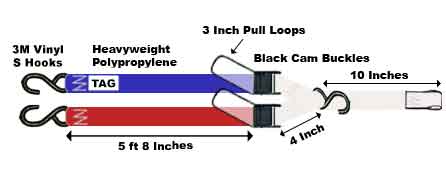 - 4 Inch Fixed End Strap Length Between Cam Buckles And Common S Hook, 10 Inch Soft Loop Length Extending After The Common S Hook