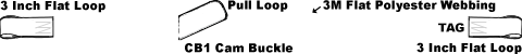 - 3 inch flat Sewn Loop on fixed end, Adjustable strap has a 3 inch flat sewn loop on the end and a pull loop near the buckle