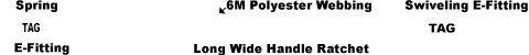 - CHE2-4M Spring E-fitting on the fixed end, CHSEB2-6M Swiveling E Track Fitting on end of the adjustable strap