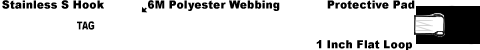 - CHS1S-3M Stainless Steel S Hook on the end, 1 inch flat sewn loop on the opposite end