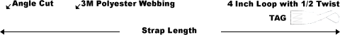 - 4 inch Loop with 1/2 twist on one end of the strap, angle cut ends