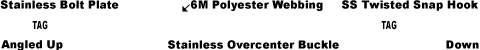 - CFBP175S-5M Stainless Bolt Plate, Angle Up, on fixed end, CHTS2S-5M Twisted Snap hook, hook down, on end of adjustable strap