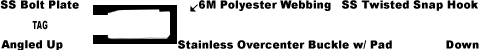 - CFBP175S-5M Stainless Bolt Plate, Angle Up, on fixed end, CHTS2S-5M Twisted Snap hook, hook down, on end of adjustable strap