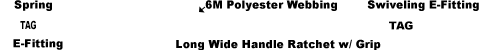 - CHE2-4M Spring E-fitting on the fixed end, CHSEB2-6M Swiveling E Track Fitting on end of the adjustable strap