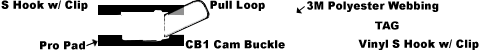 - CHSRC1V-1M Vinyl Coated S Hook with retainer clip on each end, Sewn-in pull loop on adjustable strap