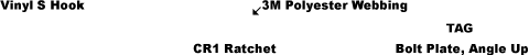 - CHS1V-1M Vinyl Coated S Hook on the fixed end, CFBP1-1M Bolt Plate, Bend Angle Up, on end of adjustable strap