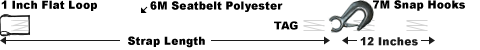 - 1 Inch flat sew loop on one end, CHTH-7M Forged Snap Hook with 12 inch snap hook safety strap on the opposite end