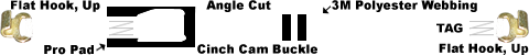 - CHF1-1M flat hook, hook facing up, on both ends, angle cut loose end on adjustable strap