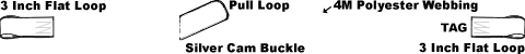 - 3 inch flat Sewn Loop on fixed end, Adjustable strap has a 3 inch flat sewn loop on the end and a pull loop near the buckle