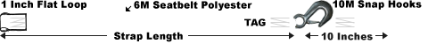 - 1 Inch flat sew loop on one end, CHTH-10M Forged Snap Hook with 10 inch snap hook safety strap on the opposite end