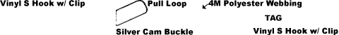 - CHSRC1V-1M Vinyl Coated S Hook with Retainer Clip on each end, Adjustable strap has a sewn-in pull loop