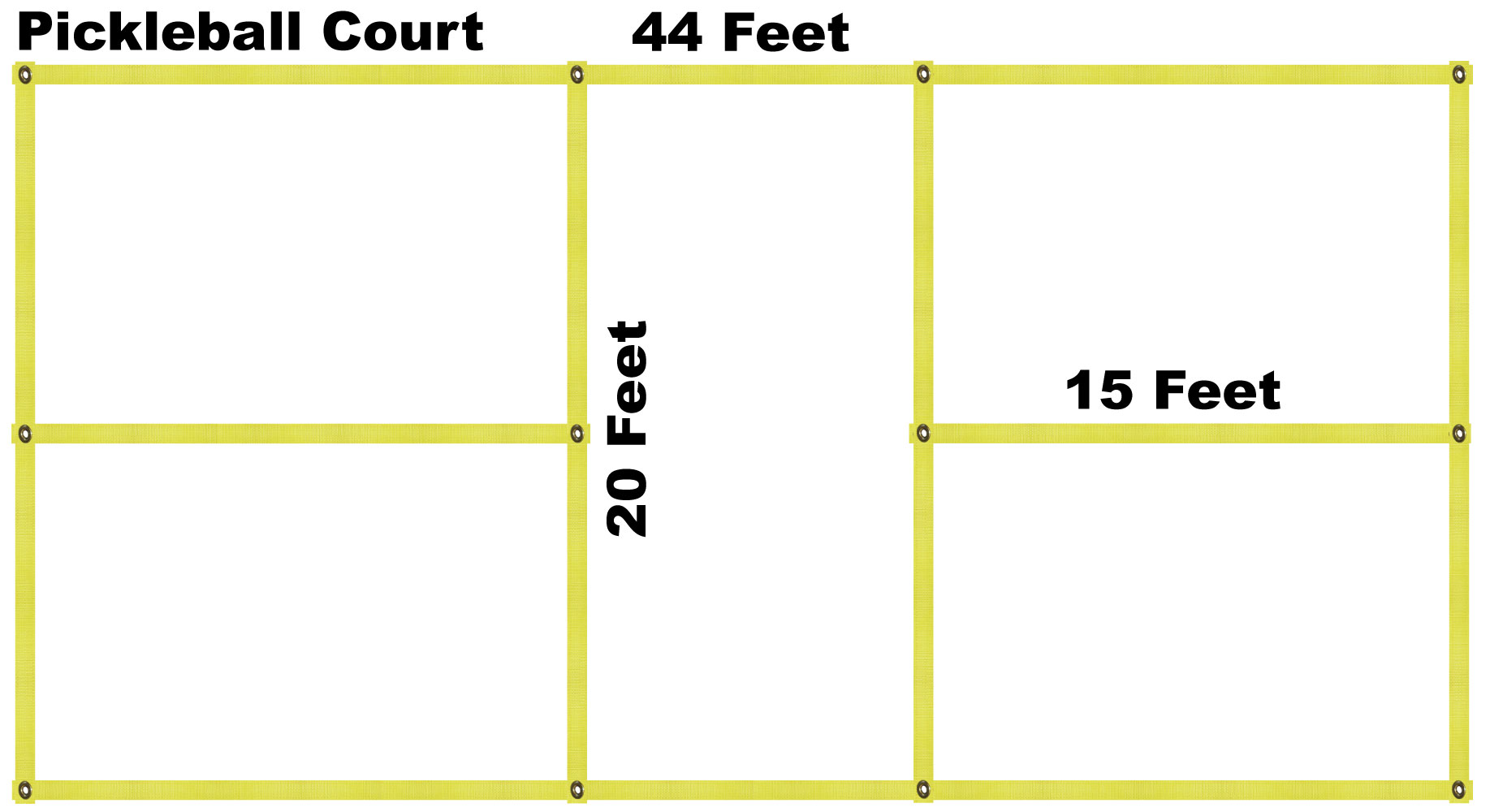 - Each Pickle Ball Court Kit Comes With Two 44 Foot, Four 20 Foot And Two 15 Foot Straps